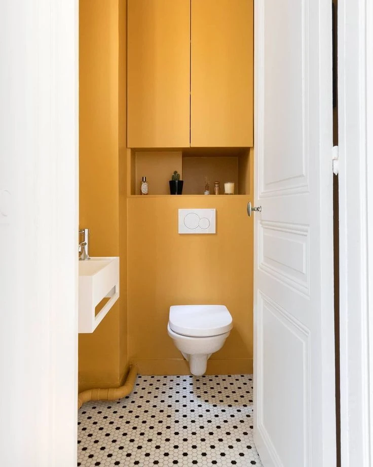 Si lo tuyo son los baños llenos de vida, el mostaza es el color para vos. Usalo en toallas, alfombras o hasta en los azulejos para dar un plus de alegría y calidez. Con este tono, ¡tu baño no va a pasar desapercibido!