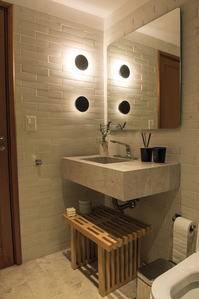 La luz cálida, bajita, tenue, es la clave para que el baño invite a quedarse.