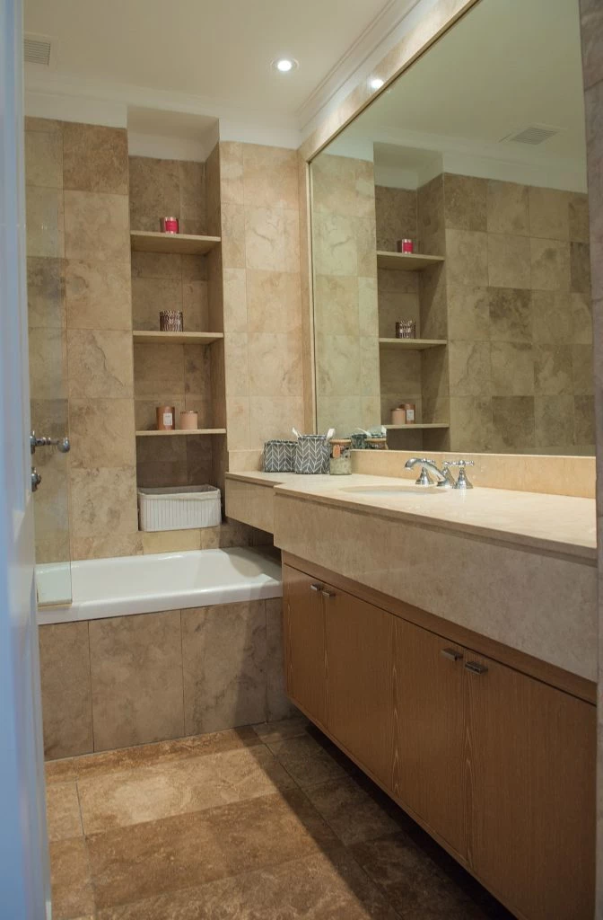 El baño en suite de la casa de Lucía Nini, influencer de moda y lifestyle, y una de las creadoras de Te Lo Dije Nena (@telodijenena), se caracteriza por ser clásico y súper funcional. Sumó espacio de guardado con un mueble de guardado diseñado a nuevo por debajo de la mesada.