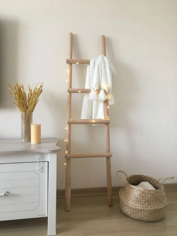 En estas famosas escaleritas, hay quienes las decoran con lucecitas a pila o hasta le cuelgan contenedores para generar más sectores de guardado. Podés elegirlas de madera o en formato tipo soga para un efecto más liviano.