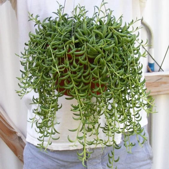 Su nombre científico es Senecio radicans y es una suculenta rastrera común. Nativa de África, es de rápido crecimiento y súper fácil de cuidar, siendo una alternativa muy recomendada para principiantes en el mundo de la jardinería.
