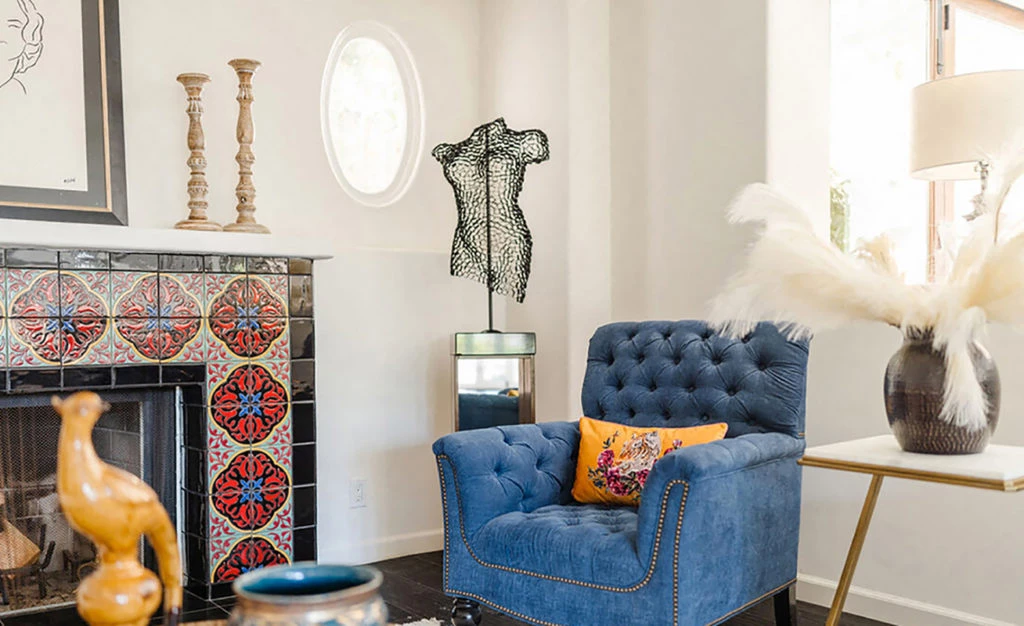 Una chimenea con azulejos coloridos pintados a mano conquista todas las miradas en uno de los rincones de la sala de estar principal. Sin dudas, es uno de los sectores más destacados de la lujosa propiedad.