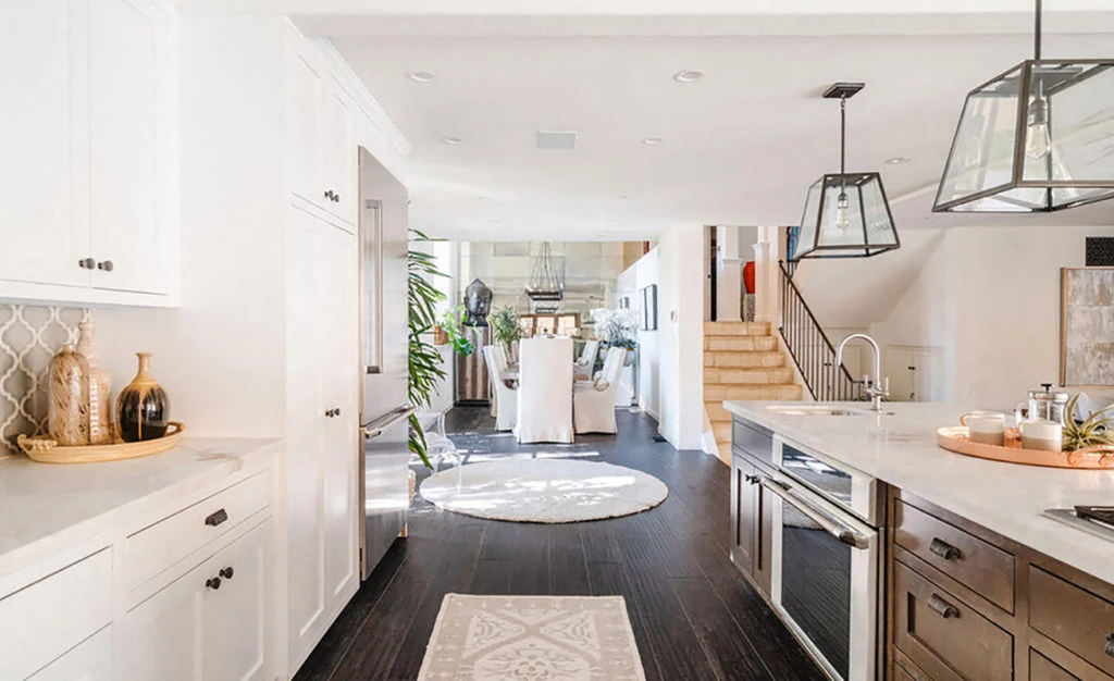 La cocina tipo gourmet es de concepto abierto, cuenta con acabados de lujo, electrodomésticos de alta gama de acero inoxidable, mesadas de mármol y una isla desayunadora que conecta con el comedor. Sin dudas, es súper cómoda y funcional.