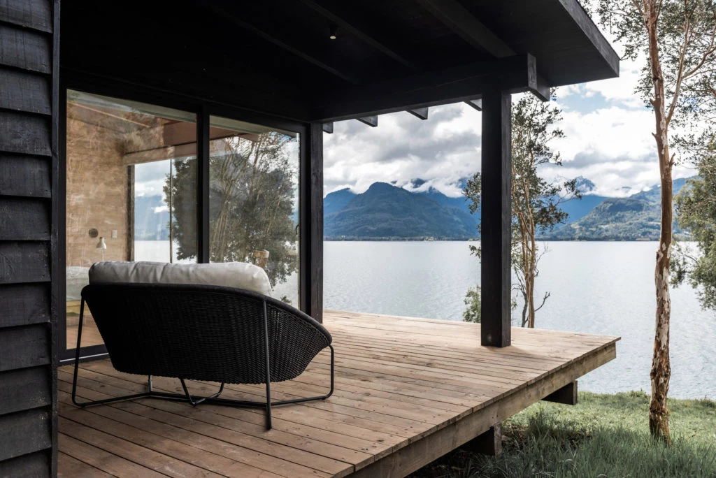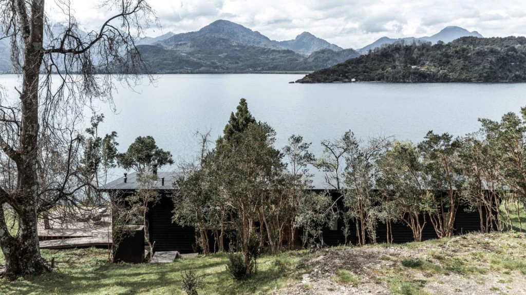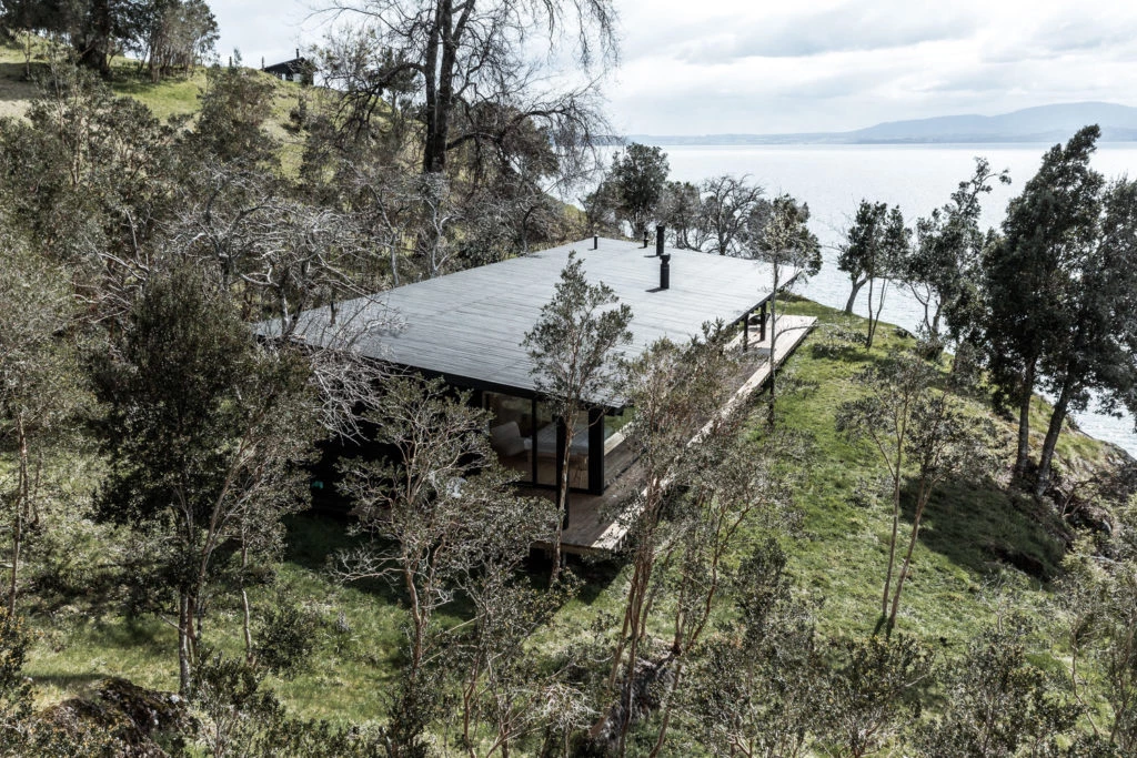 Casa en el Lago fue emplazada respetuosamente entre los árboles, sin quitarlos, adaptando su posición a éstos, de esta manera, se mimetiza entre ellos intentando de ésta manera generar un menor impacto visual sobre el lugar.