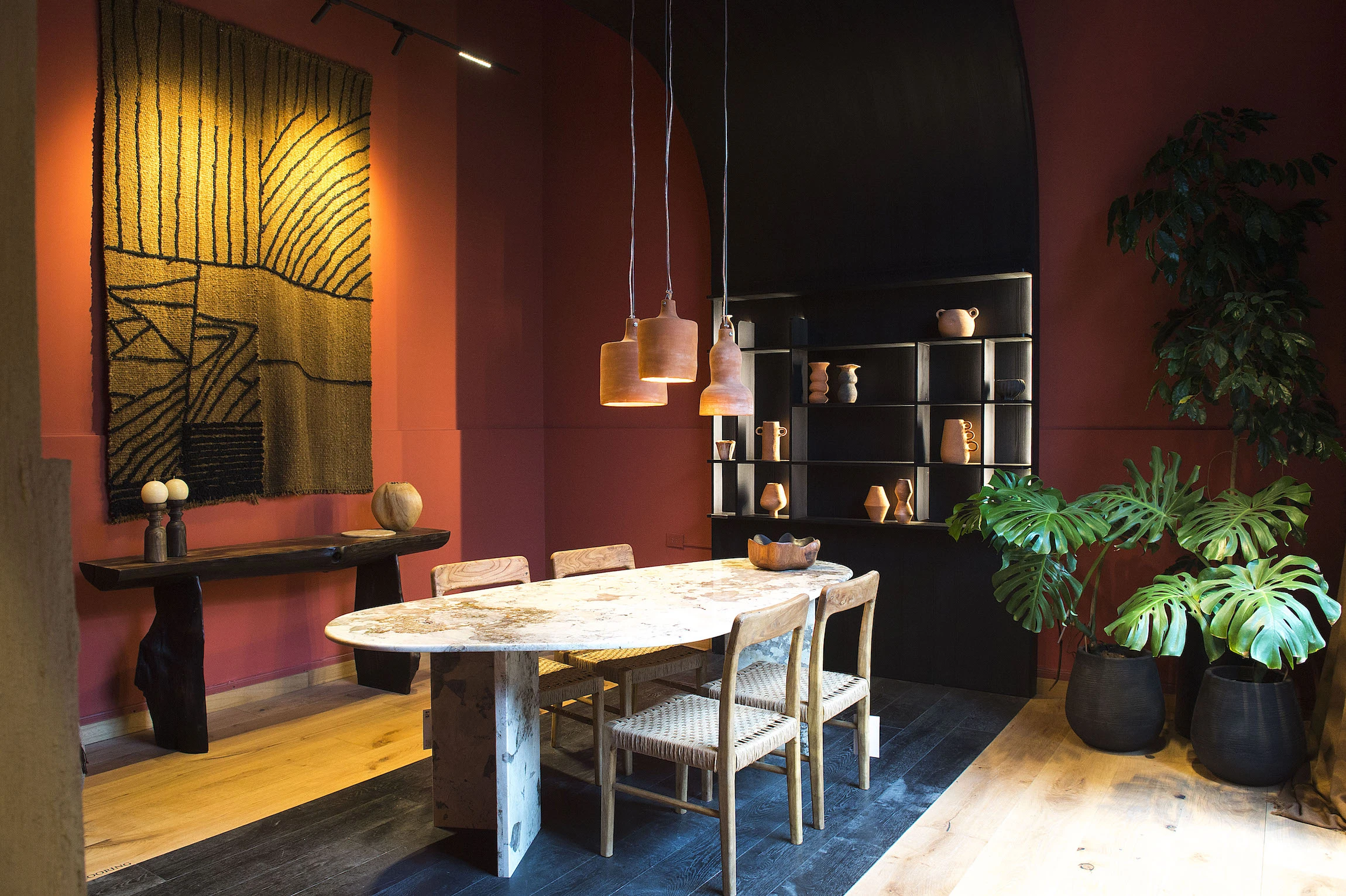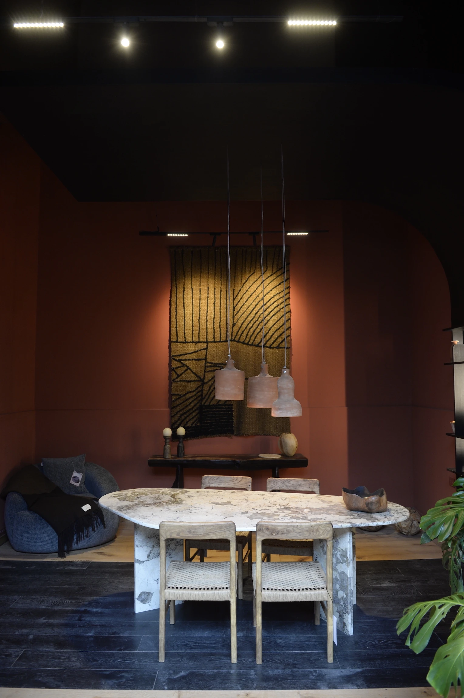En Casa DIR los materiales naturales son protagonistas. Desde el cuero de oveja y las fibras naturales, que se pueden apreciar en espacios como el de República Design o Illari Puna, hasta innovadoras aplicaciones de arcilla y madera, como las lámparas de El Comedor o las esculturas del artista plástico Nico Lupion.
