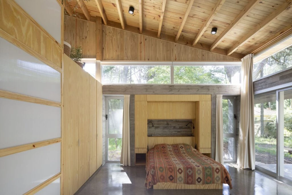 La flexibilidad en el espacio está ligada a la indeterminación de los ambientes y a los elementos móviles que permiten rápidamente cambiar la disposición entre un gran espacio de uso para el encuentro a un estar comedor con un dormitorio cerrado.
