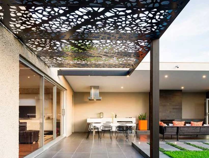 - En pérgolas y cielorrasos: los techos de chapa perforada son los favoritos del 2022 y todo gracias a su poder de transformar las sombras en diseños originales y personalizados.