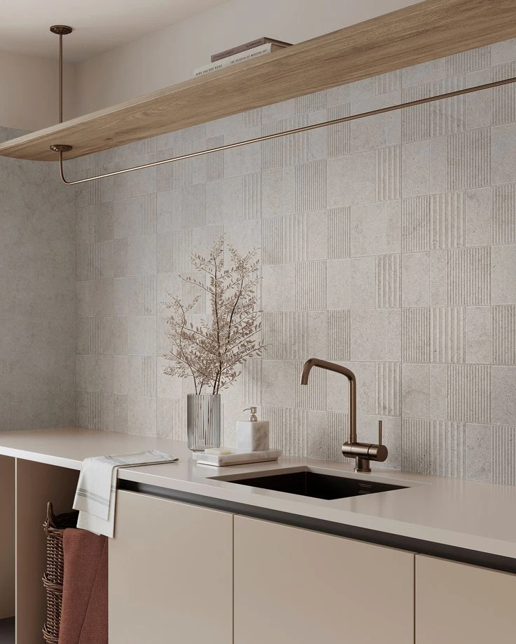Los azulejos dejan de ser aburridos y planos. En 2025 se viene fuerte la tendencia de azulejos con texturas y relieves para darle dinamismo y personalidad a las paredes de la cocina. Jugá con colores neutros o tonos más atrevidos para que la decoración cobre vida.