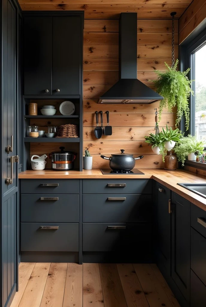 Aunque parezca raro, el negro o los tonos súper oscuros también pueden funcionar en cocinas chicas… si sabés cómo usarlos. Lo importante es combinarlos con blancos, maderas claras o incluso espejos para equilibrar.
