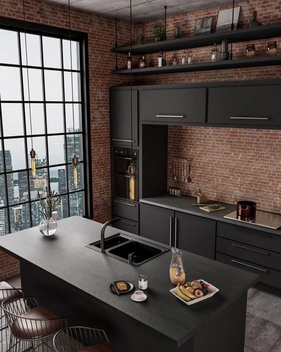 Una buena opción para darle una impronta industrial a la cocina sin gastar demasiado ni meterse en obras engorrosas, es colocar en una de las paredes un vinilo símil ladrillo o piedra. ¡No falla!.
