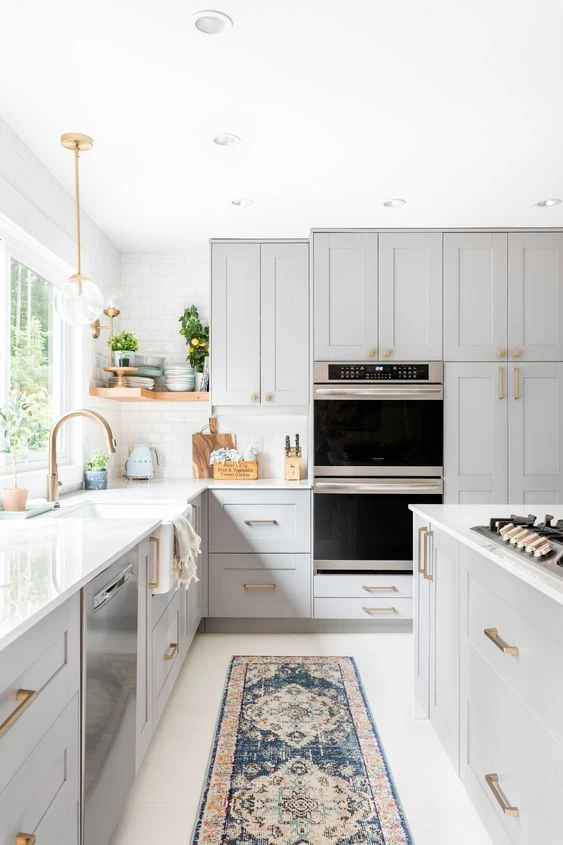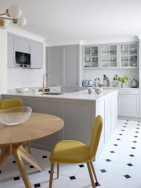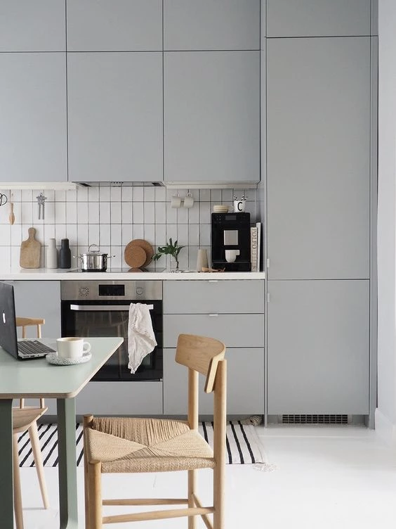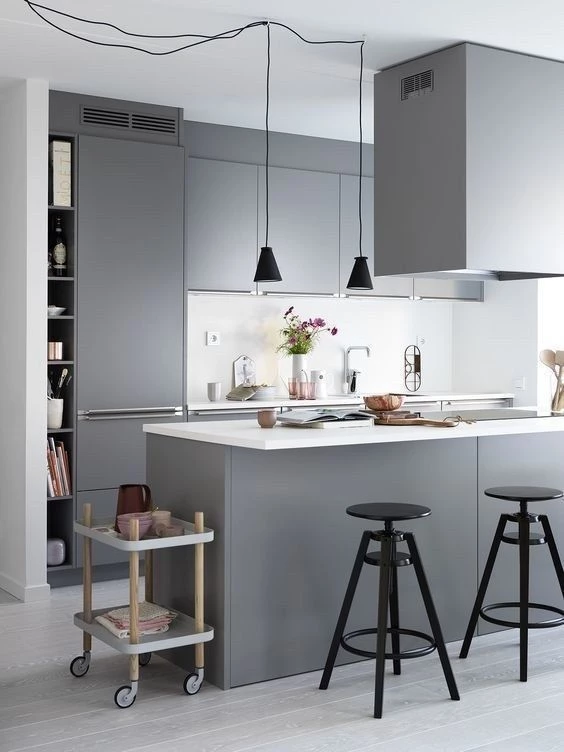 Si esta apuesta parece tentadora pero la cocina es pequeña y no cuenta con una buena entrada de iluminación natural durante el día, nada mejor que ir por la gama de los grises más claros para que el espacio no resulte oscuro y agobiante.