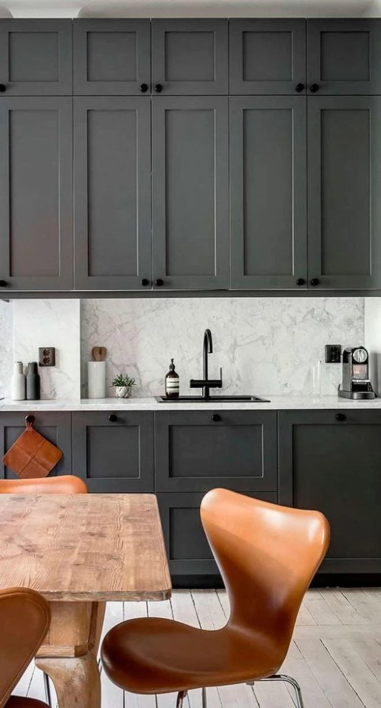 El mármol en las mesadas o paredes, es sinónimo de sofisticación y elegancia. Y combinado con toques en color gris -en mobiliario o paredes-, la elegancia se potencia aún más dando como resultado una cocina exquisita.