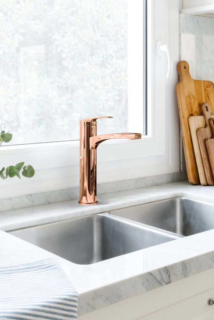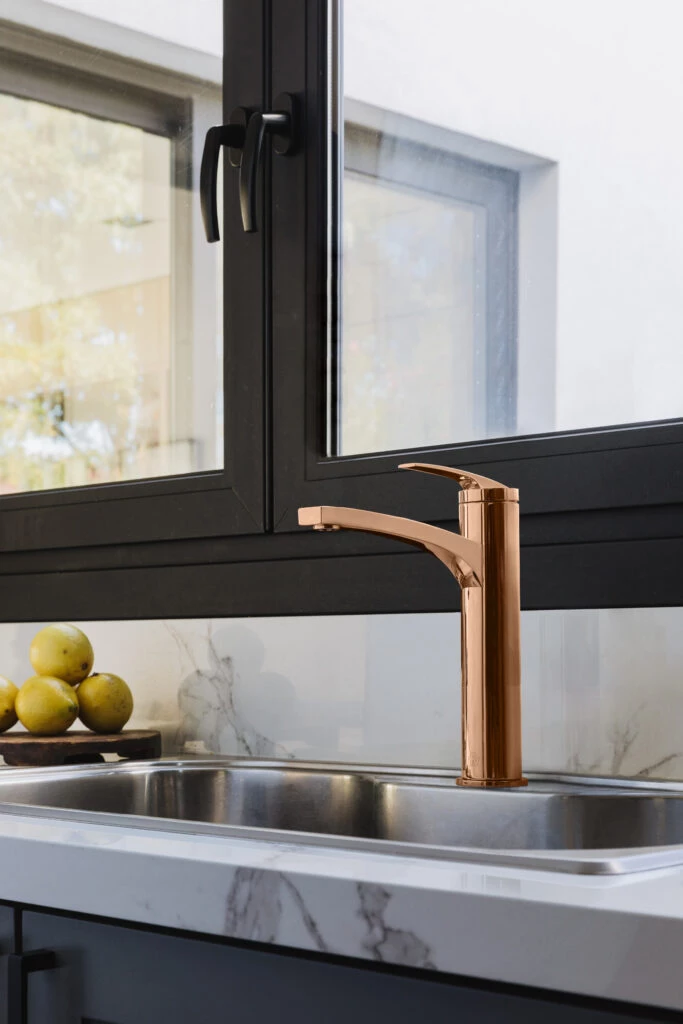 Su acabado Rose Gold, resulta en una elección elegante y moderna para aquellos que buscan un toque de sofisticación en sus espacios, la sutileza en sus tonalidades logran un real toque de frescura, lujo y contemporaneidad al espacio de la cocina.