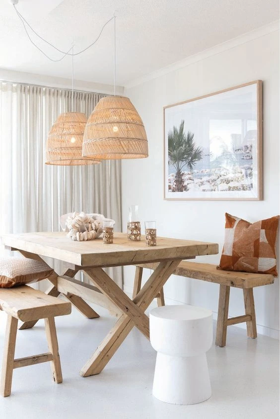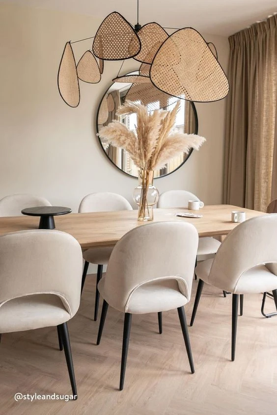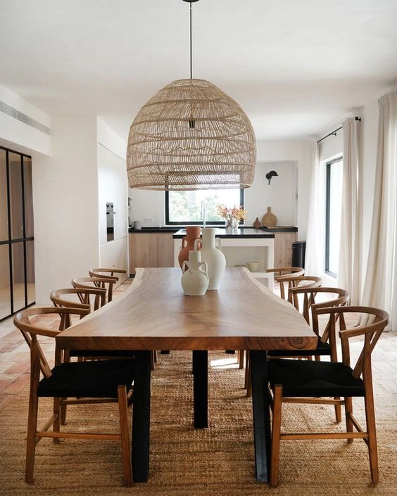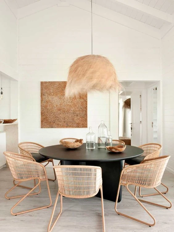 Por otro lado, en 2024 reinan las lámparas naturales con materiales amigables como el yute, el mimbre, la madera ¡hasta la paja!.