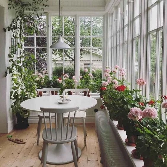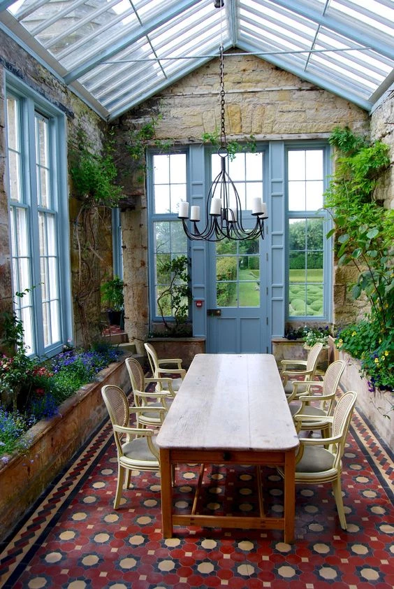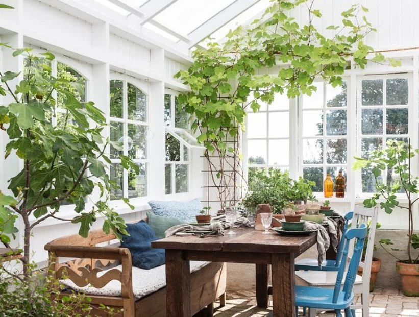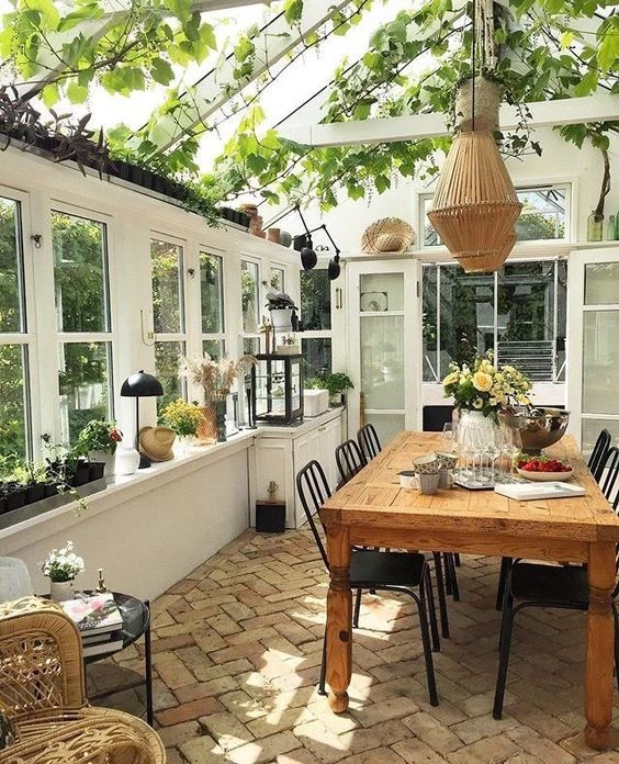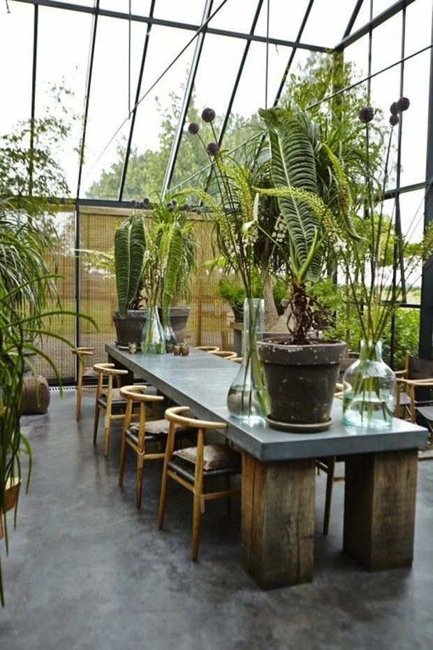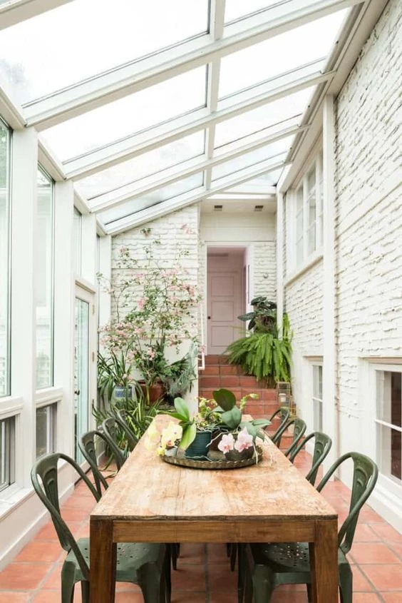 Un uso diferente pero con muy buenos resultados para jardines de invierno, es el de ubicar allí el comedor. Comer bajo las estrellas, o disfrutando de la luz natural durante el día, rodeado de plantas y de cara al jardín, es siempre una modalidad placentera.