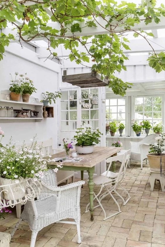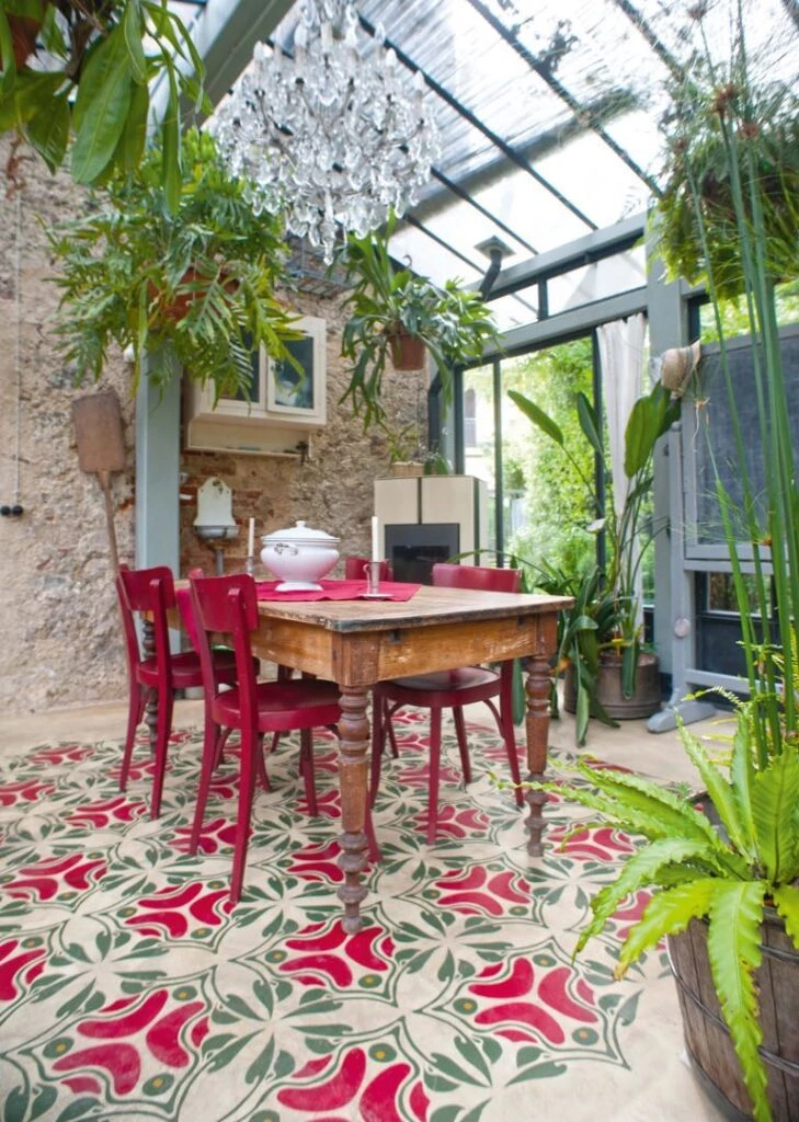 Adoquines premoldeados, ladrillos macizos, calcáreos lisos o con diseño, cemento alisado gris o con ferrites: estos son los materiales más presentes cuando se trata de jardines de invierno. Son prácticos, duraderos, se pueden mojar al regar las plantas) y acompañan (o refuerzan) el matiz romántico de estos espacios.