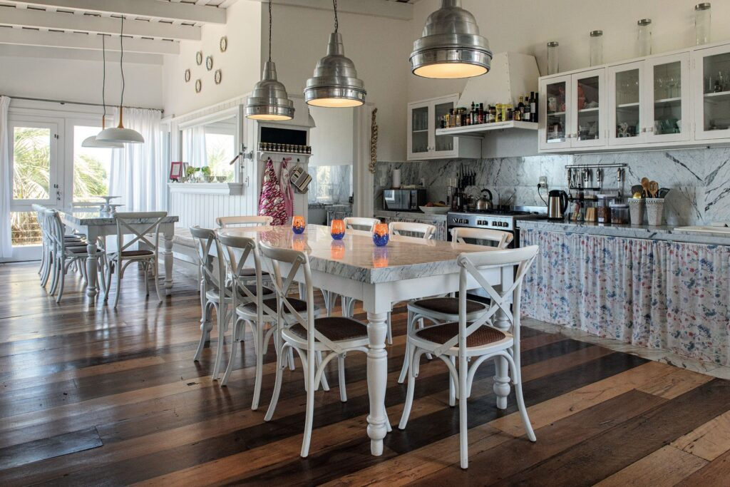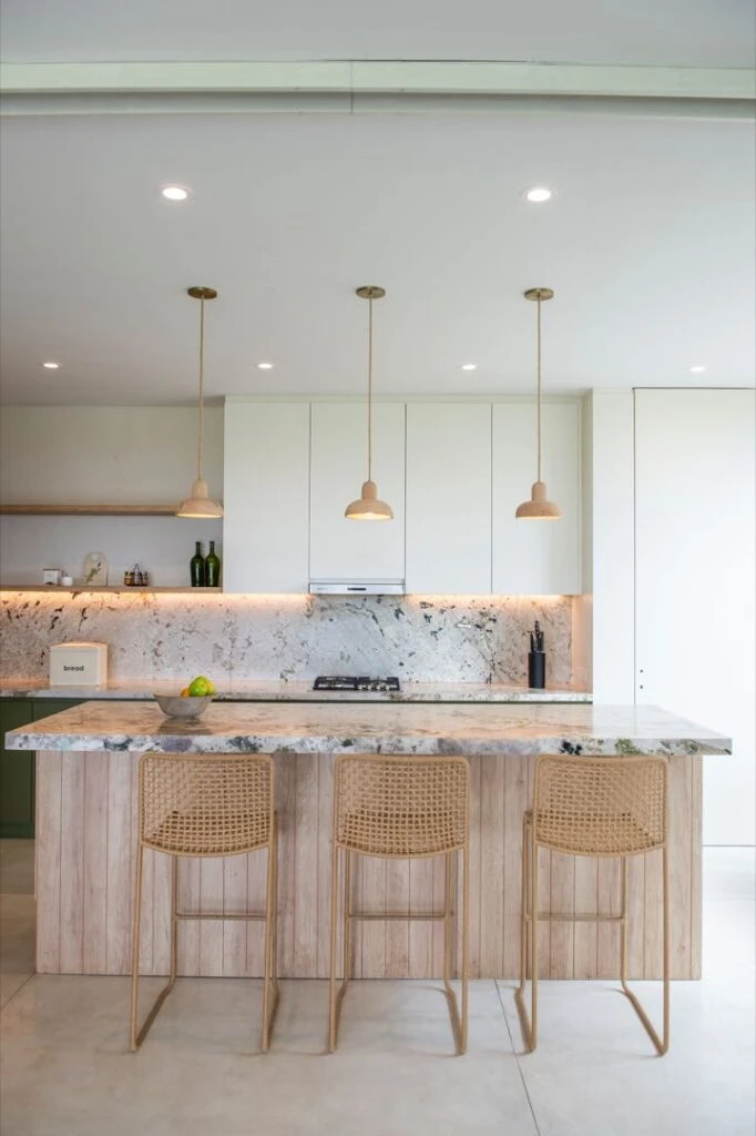 Una lámpara bien elegida puede marcar un antes y un después. Si soñás con una cocina con aire chic, probá con una colgante de mimbre o ratán. Para algo más moderno, lámparas negras o metálicas son la clave.
