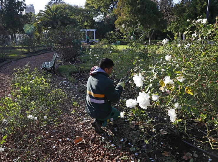 El equipo de Arbolado y Mantenimiento de los espacios verdes de la Comuna 7, encargado de la poda de los rosales del Parque Chacabuco, entregó el año pasado esquejes a más de 200 vecinos y vecinas.