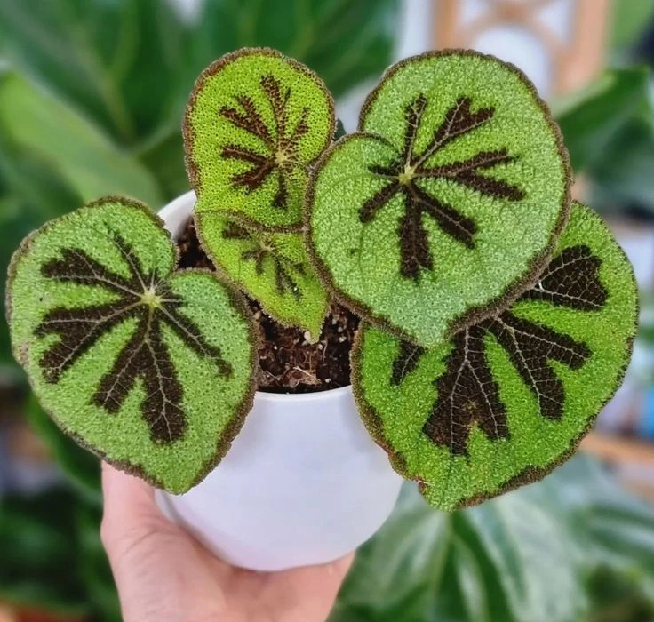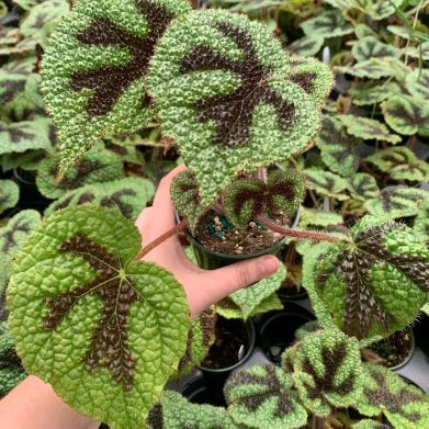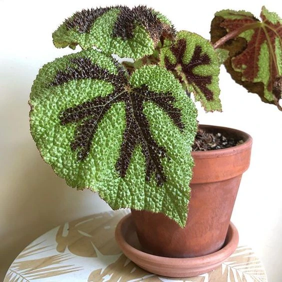 La begonia iron cross es una de las variedades híbridas de begonia más curiosas y favoritas de Internet, junto con la begonia 'black mamba' y le begonia punteada.
