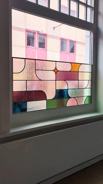 2. Vidrios decorativos y vinilos en la ventana. Desde el vidrio esmerilado “de toda la vida” hasta vinilos con diseños geométricos, florales o románticos... Este recurso da privacidad sin perder luminosidad y resulta ideal para quienes quieren sumar un detalle diferente sin grandes obras. Además, es fácil de limpiar y mantener.