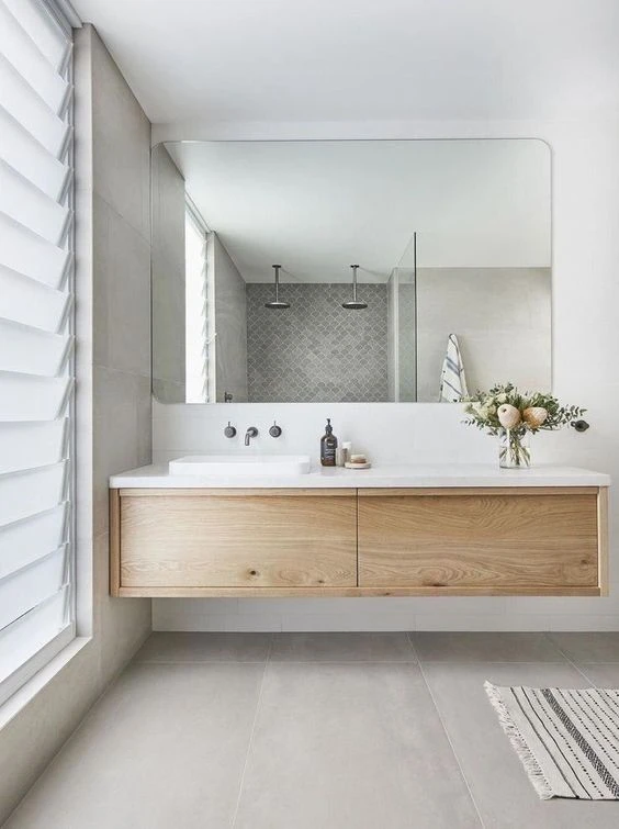 - Para baños amplios: espejos grandes, que ocupen buena parte de la pared.