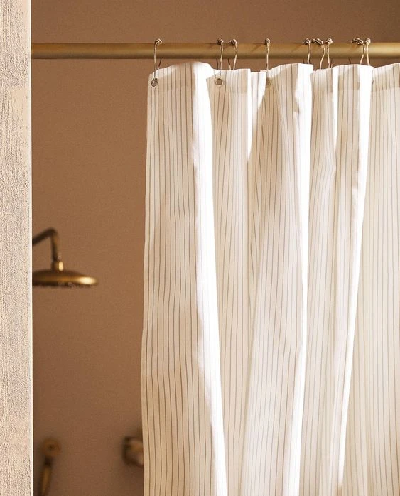 Si bien es cierto que son más caras que las versiones de plástico, las cortinas de ducha de algodón se consagran como la opción más elegante por su acabado en tela y su ligera caída.