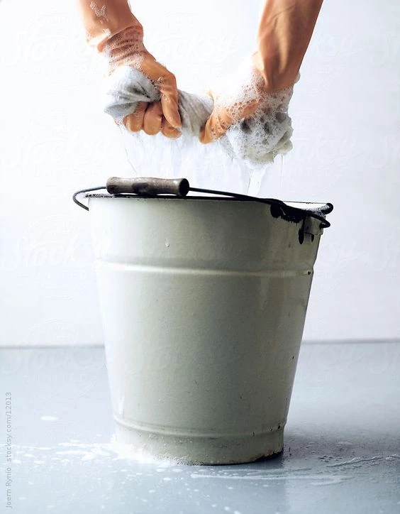 1. Colocá los paños de microfibra en un balde o recipiente con agua tibia y agregale de 3 a 5 cucharadas de detergente para ropa líquido.