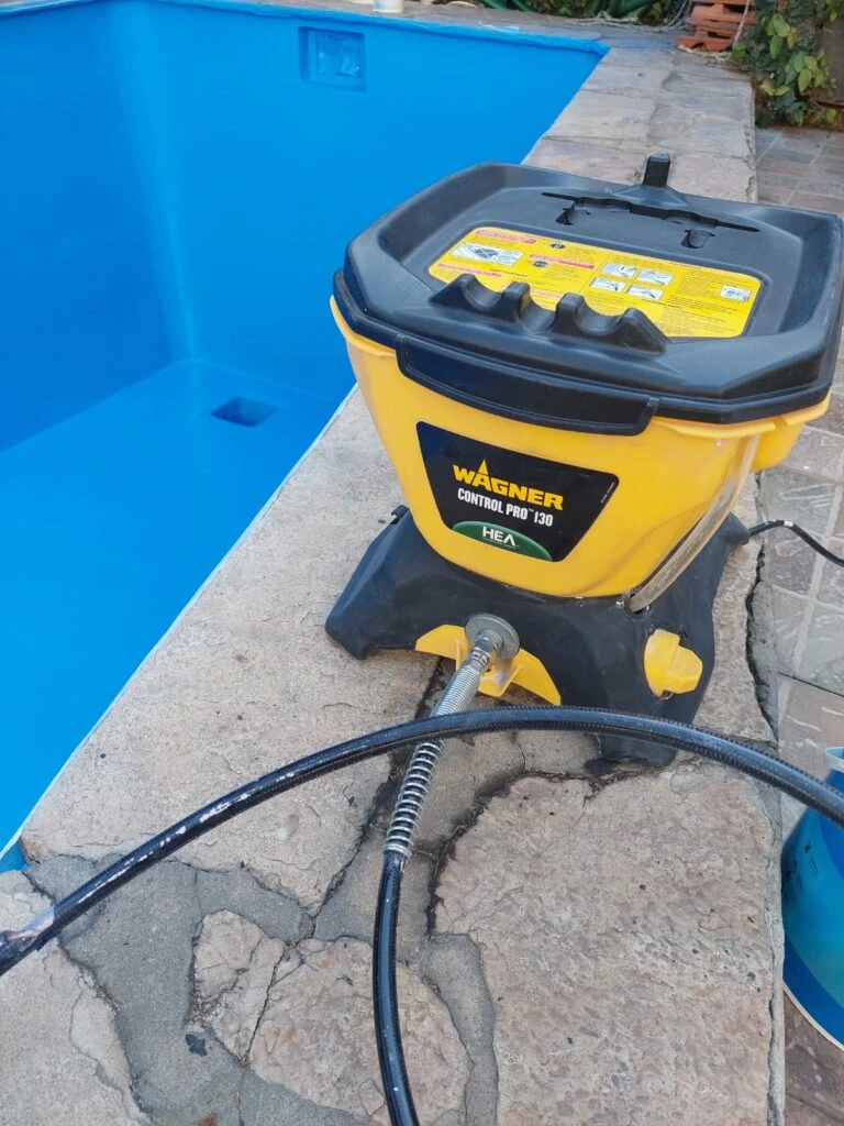 Si vas a pintar a mano, aplicá dos manos de pintura y dejá secar 24 horas entre capas. Si llueve entre mano y mano, elimina el agua y deja secar antes de seguir. Con máquina, el proceso es similar pero más rápido y prolijo: absorbe la pintura directamente de la lata, así no tenés que recargar el rodillo y evitas que se salpique pintura. Además, queda un acabado más parejo.