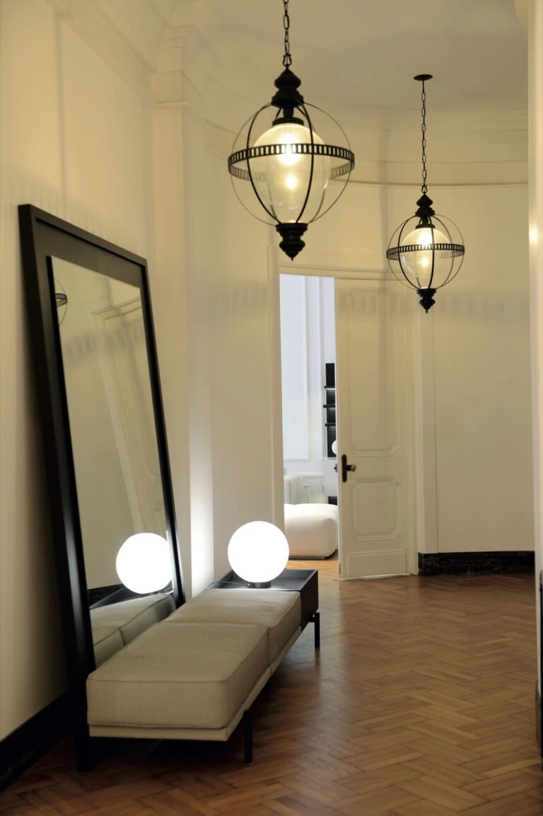 La lámpara Arco (Iluminación Agüero) suma la nota de diseño de autor que tan bien le va a esta propuesta.