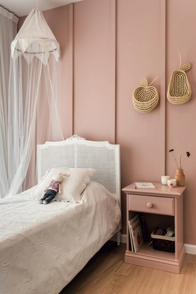 Un toque de pintura puede hacer magia. Y no hace falta que pintes todo el cuarto. Podés elegir una pared (o media pared) y pintarla con colores llamativos que le gusten a tu peque. Pueden ser desde tonos pastel hasta un amarillo energizante o un rosa palo.
