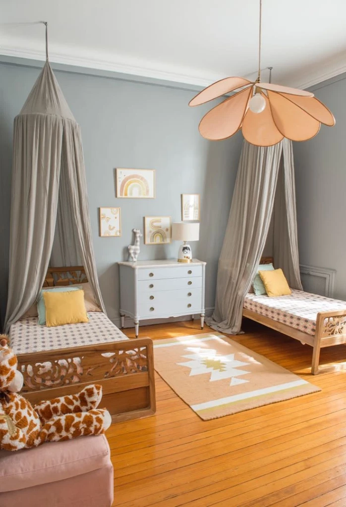Los textiles son una manera barata y rápida de transformar una habitación. Renová la ropa de cama con diseños coloridos o temáticos que a tus hijos les encanten: animales, autos, princesas, lo que sea). Sumá una alfombrita canchera y cambiá las cortinas por unas de telas livianas y frescas.