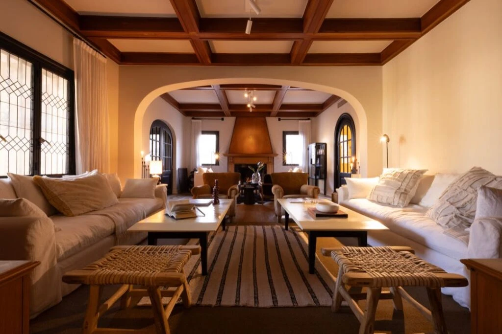Arcadas, vigas y maderas nobles para el living