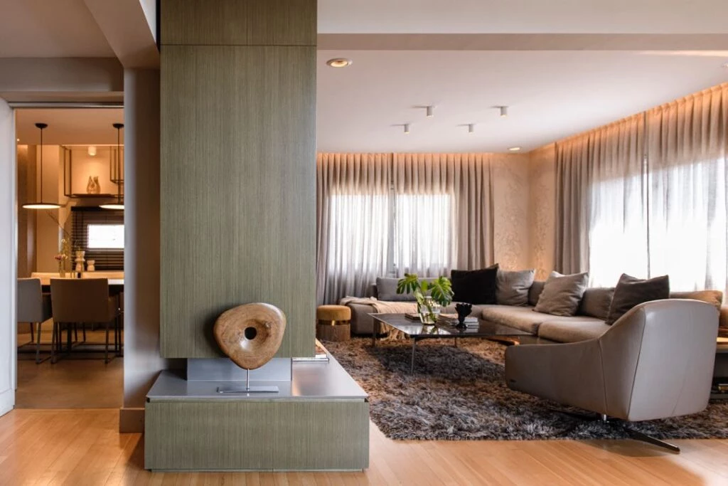 El diseño contemporáneo es absoluto protagonista de este loft y dice presente con un mix de texturas (lino, cuero , bronce, lacas brillantes y mates); y materiales nobles (madera y mármol). El resultado es una propuesta sofisticada y actual.