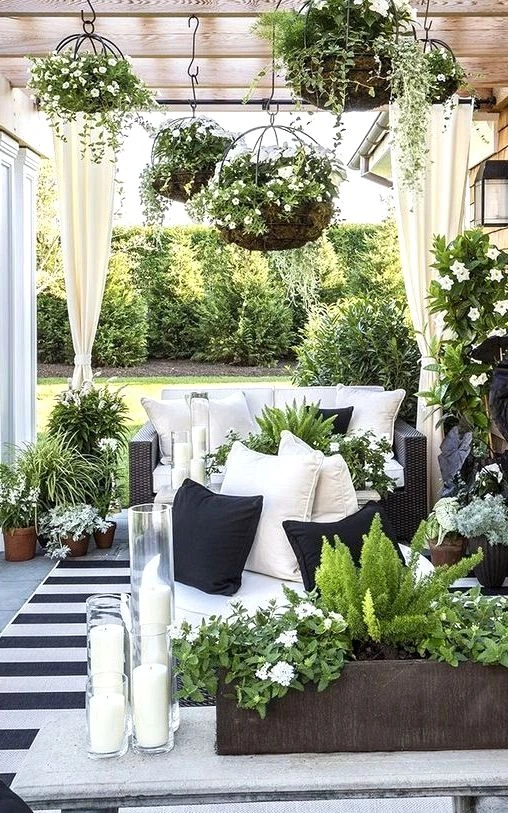 Para darle el cierre perfecto al jardín, los detalles decorativos deben estar presentes: algún banco con lindos almohadones, macetas colgantes con flores, canastos de fibras naturales, fanales con velas de ricos aromas, guirnaldas con luces cálidas, etc.