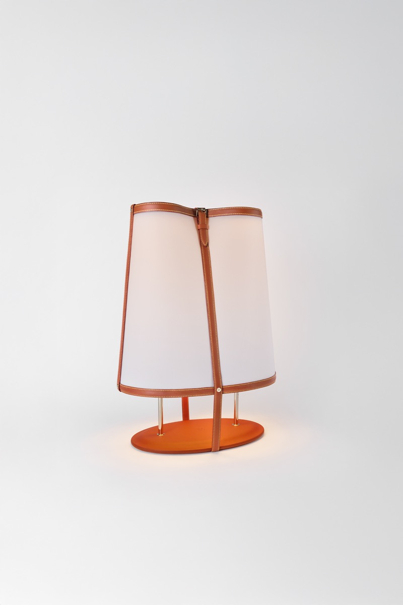 Es el caso de la silla de respaldo delgado Pegase, elaborada en cuero y madera natural, y la lámpara de mesa Noé, cuyo diseño está inspirado en el emblemático bolso Steamer de Louis Vuitton.