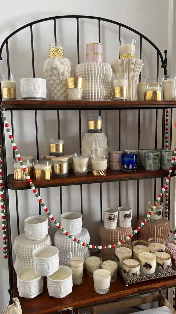 En la planta alta, una cálida sala de recepción continúa con la estética navideña. Allí, el ambientador colocó una mesa antigua en el centro y le sumó algunas velas, además de un ciervo blanco de cerámica y un florero con flores frescas.