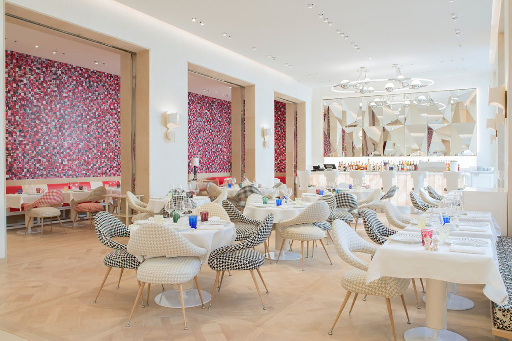 El edificio también alberga dos restaurantes: Le Restaurant Monsieur Dior y La Pâtisserie Dior, ambos dirigidos por el prestigioso chef francés Jean Imbert.