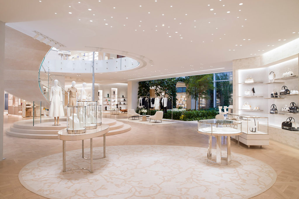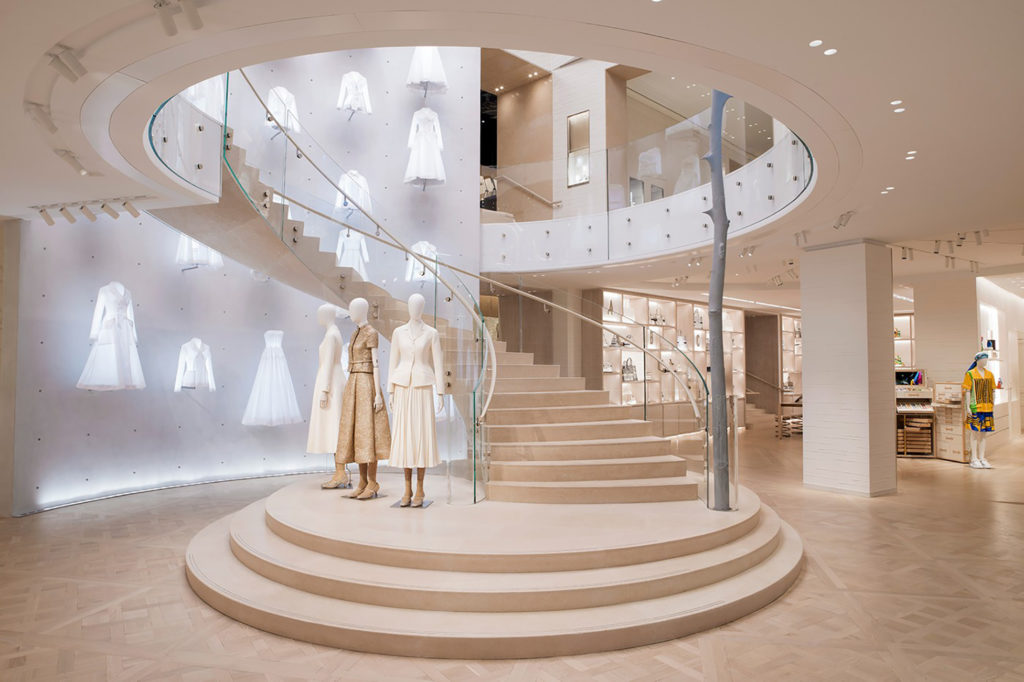Ubicada en la 30 de la avenida Montaigne, la renovación de la tienda principal de Dior, estuvo a cargo del arquitecto Peter Marino y cuenta con una increíble galería acristalada con los techos más altos de París (ocho metros).