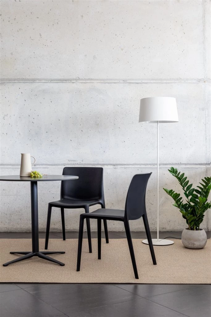 Apilable y muy versátil capaz de adaptarse en todos los espacios, esta silla sostenible se destaca por su diseño fluido y esbelto el cual, gracias a la tecnología aplicada, aporta ligereza, estética y estabilidad.