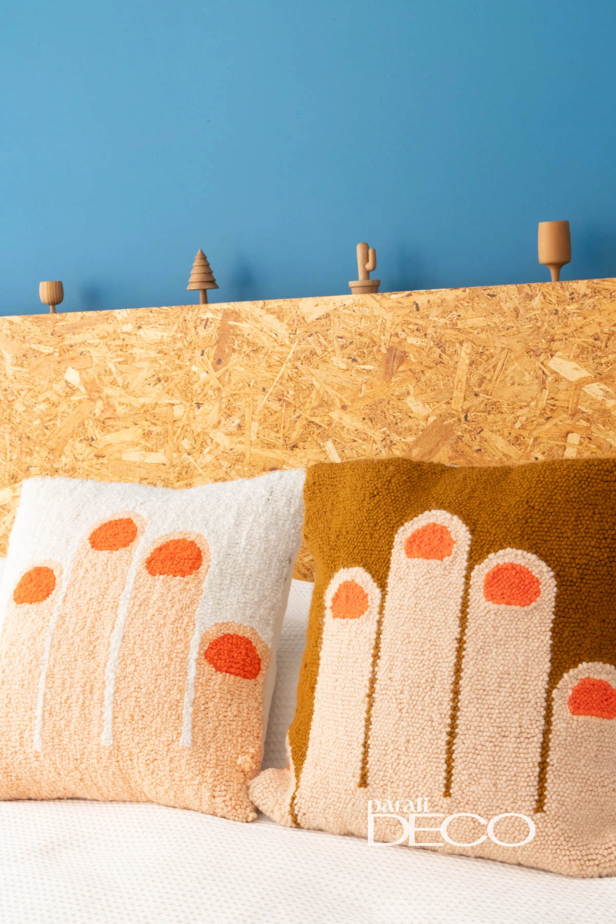 Lo hecho a mano es otra seña particular del departamento de Caro Bello, autora y creadora de muchos elementos de la decoración, funcionales y 100 % aesthetic, como alfombras, almohadones, muñecos, tapices, cuadros, tazas, bowls, una silla en miniatura y hasta un pequeño globo terráqueo hecho en papel… como un origami.
