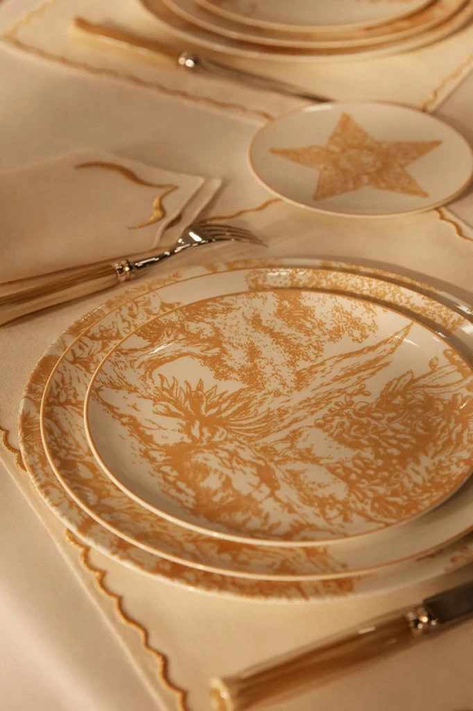 La lujosa colección de la maison, que incluye diferentes diseños y juegos de platos, copas, vasos, cubiertos y fuentes, propone "vestir" la mesa de Fiestas de una manera muy sofisticada y original.
