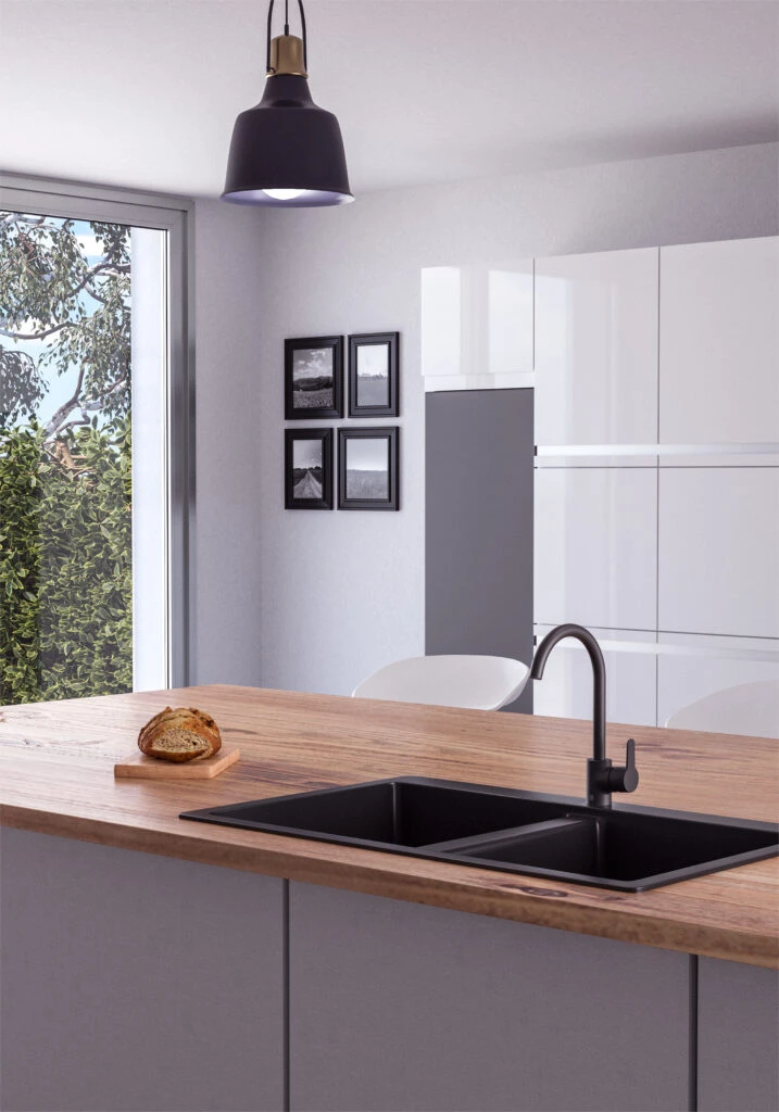 Una de las primeras opciones es la colección Puelo, que se encuentra disponible en un nuevo acabado Negro Mate, ideal para espacios y personalidades versátiles y atemporales. Además de otorgar sofisticación y minimalismo a la cocina, este diseño cuenta con un aireador inserto en el pico de la canilla que genera un caudal de agua suave y evita salpicaduras.