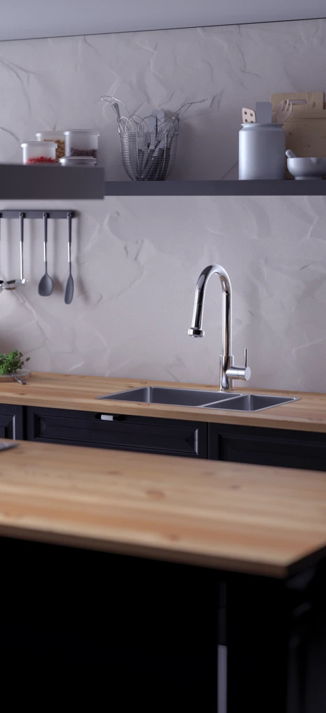 Del otro lado, Huemul y Talampaya se hacen fuertes, teniendo un rociador extraíble que fusiona belleza y alto rendimiento. Con un diseño en espiral, el rociador de Talampaya logra alcanzar cada rincón de la pileta y facilita la limpieza de frutas, verduras y diversos utensilios. La manipulación de estos últimos se vuelve cómoda, independientemente del tamaño de los elementos, gracias a la altura del pico de la canilla y su diseño ergonómico, que se adapta a las necesidades de cada usuario.