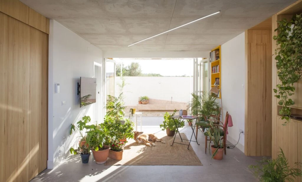 Así, el diseño de esta casa no solo incorpora medidas para promover la sostenibilidad ecológica -como una red de saneamiento separativa con reutilización de aguas pluviales y grises, la implementación de estrategias pasivas para el control climático y el uso de energías renovables-, sino que también busca integrar en el espacio a sus habitantes humanos y no humanos, entendiendo el espacio arquitectónico como lugares para la co-habitación y la asociación voluntaria de seres.