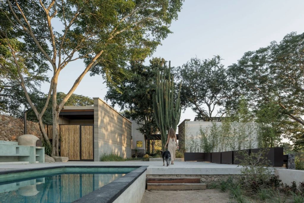 Respetar la topografía, adaptarse y acoplarse es la manera en que el contexto recibe, envuelve la residencia, y de forma ingenua determina el corazón del proyecto; un gigantesco cactus órgano rodeado de árboles de tamarindo, herencia del mismo lote.