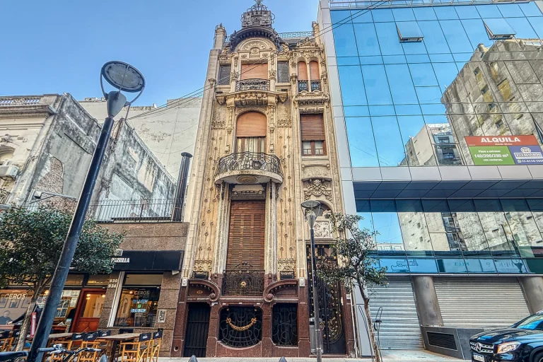 Esta joya arquitectónica fue diseñada y edificada por el arquitecto italiano Bernardo Milli en 1908. Cuenta con 900 m2, 14 ambientes y está ubicada Suipacha al 900, en el barrio de Retiro, a pocos metros de la Plaza San Martín, Cancillería y Palacio Paz, entre otros. Su estilo se inscribe en la corriente Liberty, que llamamos generalmente Art Nouveau.