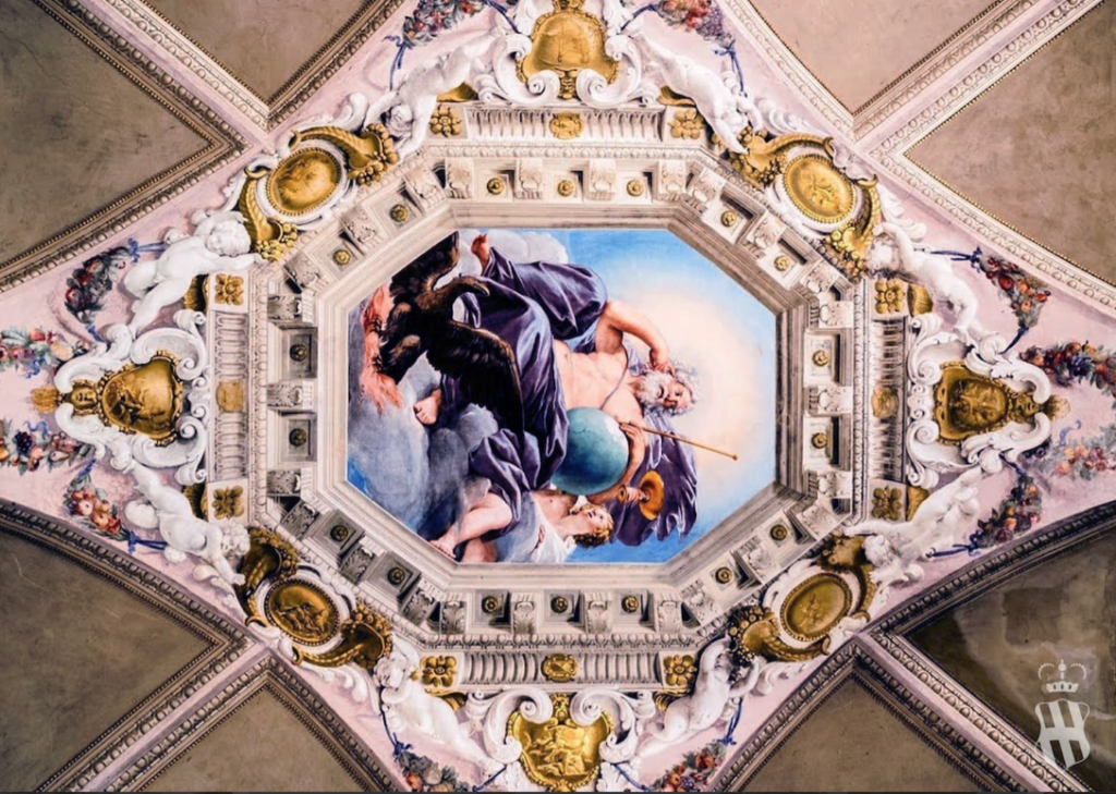 El pasillo con detalles característicos de la época conduce a varios salones. Uno de ellos, es el Salone della Guardia. Repleto de detalles arquitectónicos y obras de arte dignas de admirar, cuenta con decoraciones en el techo que representan los tres escudos de armas de la familia Medici, Panciatichi y Corsini.