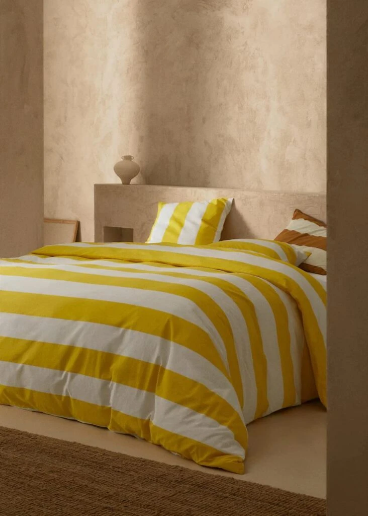 Los estampados a rayas tuvieron su momento de esplendor hace algunos años y este verano vuelven recargados. Se llevan en todo el dormitorio: cubriendo paredes a través de empapelados y en todo tipo de textiles -desde almohadones hasta mantas, alfombras y mobiliario-.