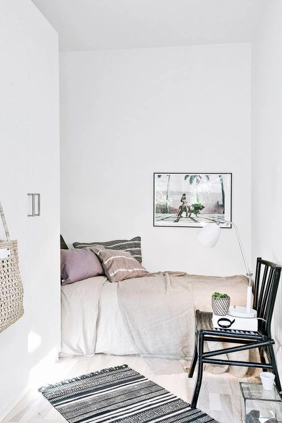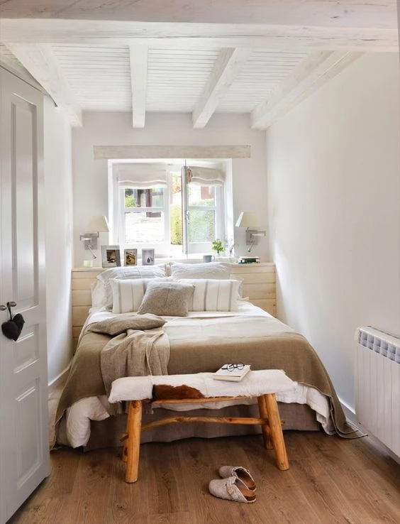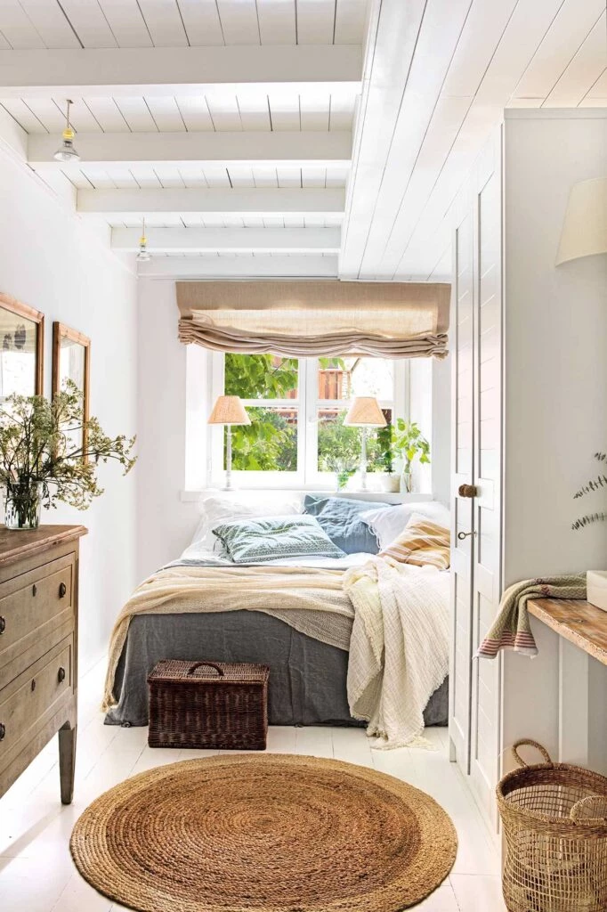 Los cuartos pequeños necesitan menos textiles: una cama repleta de almohadas dará sensación de pesadez.