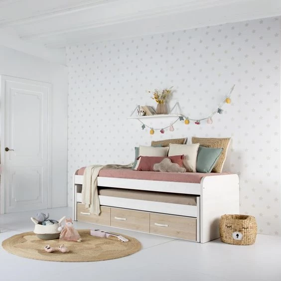 - Con cajones: son perfectas para habitaciones pequeñas ya que permiten ganar múltiples espacios de guardado como ropa de cama.